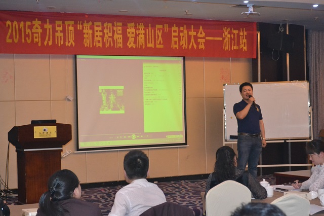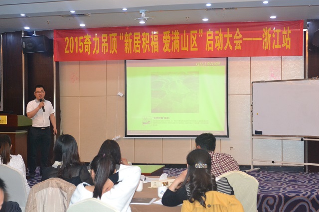 5月11日,奇力吊頂2015“新居積福、愛滿山區(qū)”浙江站啟動(dòng)大會(huì)在浙江臺州仙居拉開帷幕。奇力營銷系統(tǒng)營銷中心辦公室和銷售部浙江、江蘇兩省區(qū)各銷售經(jīng)理、市場部人員全程服務(wù),浙、江兩省區(qū)域各經(jīng)銷商共赴仙居誓師。同時(shí),更有知名咨詢策劃公司及其團(tuán)隊(duì)加盟啟動(dòng)大會(huì)。仙居奇力趙文斌趙總攜團(tuán)隊(duì)鼎力支持本次大會(huì)。在6月中考、高考來臨之際,以奇力之名,推動(dòng)公益愛心,助力山區(qū)留守兒童。