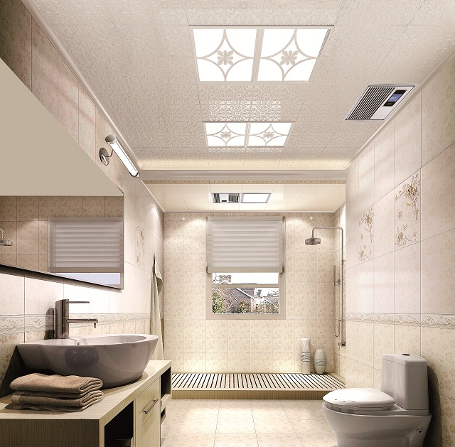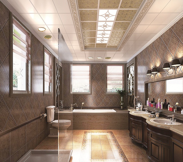 衛(wèi)浴間的水汽較重,所以,要選擇那些具有防水、防腐、防銹特點(diǎn)的材料做頂棚是很重要的。