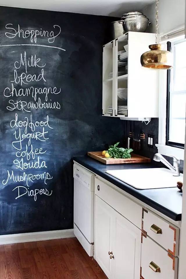 廚房里裝個黑板墻,不知道是不是玩出新高度的一種,既可以學(xué)習(xí),又可以安利各種菜單。有沒有覺得很不錯啊,隨手來個幾筆,無論大人小孩都愛上這里。
