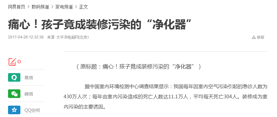 近年來隨著一些“入住新房即得病”的事件頻頻曝光,我們有責(zé)任有義務(wù)把裝修的污染源頭全部找到,這不僅是保護(hù)自己,更是保護(hù)孩子。