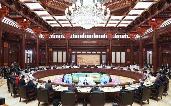 5月15日,“一帶一路”國際合作高峰論壇在北京雁棲湖國際會議中心舉行圓桌峰會,國家主席習(xí)近平主持會議并致辭。