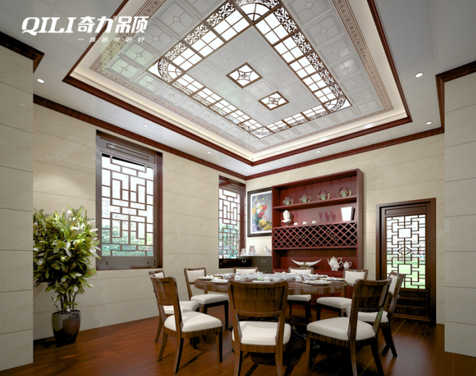 中國自古在裝飾上就非常講究,不過在新時代的中式餐廳設(shè)計上裝飾不要過于濃厚,采用簡潔的直線條會更好。裝飾物可選擇具有中國傳統(tǒng)的元素和風(fēng)格,比如一些中國結(jié)、花瓶、掛畫等等。