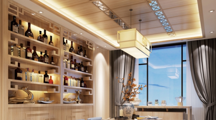 現(xiàn)代感十足的吊頂設(shè)計(jì)、扣板上簡(jiǎn)潔的圖案,更是給人以視覺上的完美享受。這種極簡(jiǎn)風(fēng)格的餐廳設(shè)計(jì)更適合快節(jié)奏的生活。