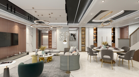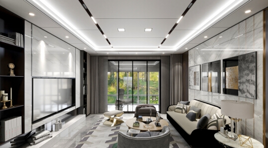 在這個客廳里,頂墻地以黑白灰來配色,定調(diào)整體統(tǒng)一性,在視覺上達到相對的“一致性”,這樣的空間真的高級感十足。