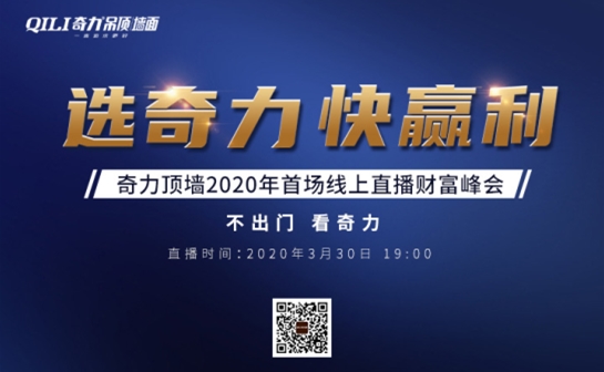 “選奇力 快盈利”奇力頂墻2020首場線上直播財(cái)富峰會,2020年3月30日19:30,不必出門,在線考察奇力,也期待您的加入!